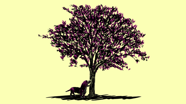 A leafy place for me to pee/ A lofty perch, to stand and see